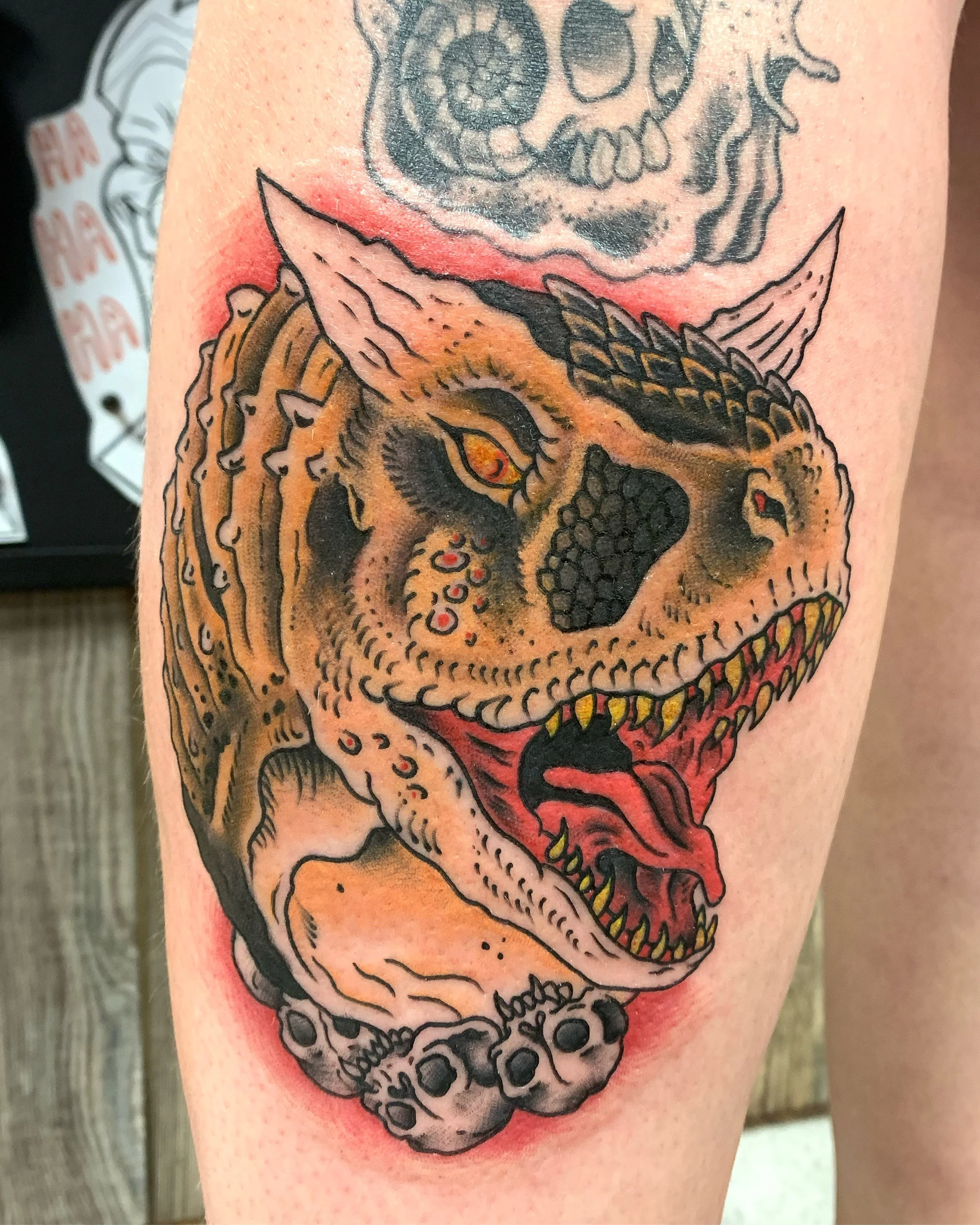 I specialize in Black & Grey Realism, Traditional, and Illustrative work. Horror is my main focus of subject/ theme to work in, but I am also happy to work on fantasy, folklore, comic books, anime, and gamer themed pieces!